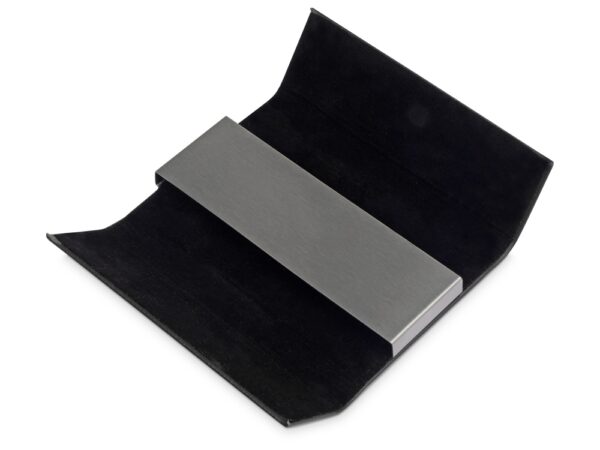 Компактная и легкая визитница выполнена в сочных цветах. Логотип можно нанести на металлическом шильде или на поверхности из искусственной кожи. Вмещает примерно 20 визиток.