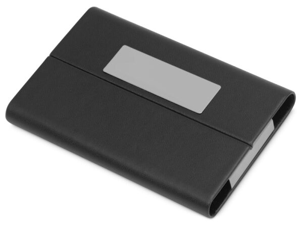 Компактная и легкая визитница выполнена в сочных цветах. Логотип можно нанести на металлическом шильде или на поверхности из искусственной кожи. Вмещает примерно 20 визиток.