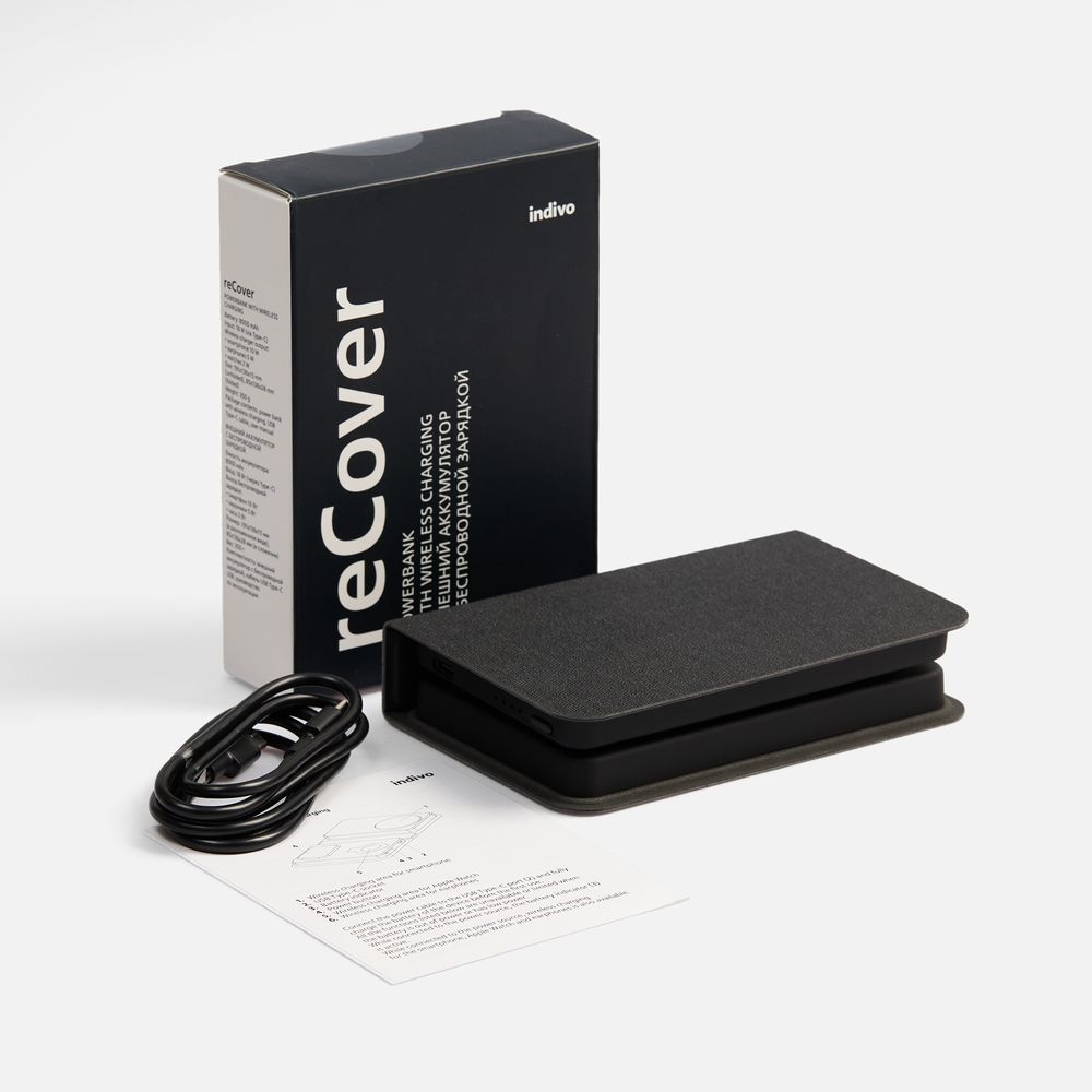 Внешний аккумулятор с беспроводной зарядкой reCover, черный