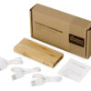 Компактный повербанк из бамбука размером меньше смартфона. Натуральный материал эстетичен на вид и приятен на ощупь. Литий-полимерный аккумулятор на 5000 мАч обеспечит от полутора до двух полных зарядок среднего смартфона. Внешний аккумулятор имеет 2 входных разъема (micro USB, USB-C) и один выходной разъем USB. В комплекте кабели micro USB, USB-C, Lightning / iPhone. Поставляется в крафт упаковке из переработанной бумаги.