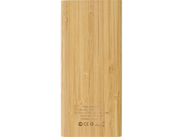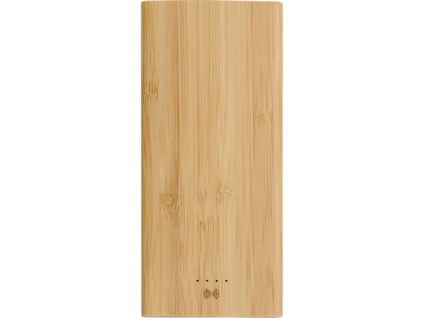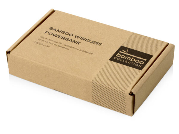 Универсальный повербанк «Bamboo Air» сочетает в себе современные технологии и натуральный материал. Поддерживает беспроводную зарядку совместимых Qi — устройств. Корпус сделан из 100% натурального бамбука без пластиковых вставок. Экологичный материал не только привлекает внимание, но имеет приятный естественный аромат и удобно лежит в руке. Повербанк имеет два выходных USB разъема, два входных разъема micro USB и USB-C и все необходимые кабели в комплекте (USB-C, micro USB и Lightning / iPhone). Полимерной литий-ионной батареи емкостью 10000 мАч в среднем хватит на несколько зарядок смартфона в зависимости от модели (2,5 -3,5 раза). Поставляется в крафт упаковке из переработанной бумаги.