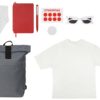 рюкзак- 300D RPET полиэстер, футболка- 100% хлопок, джерси, носки- 80% хлопок, 15% полиамид, 5% эластан, бутылка- стекло, очки и держатель- пластик, ланъярд- полиэстер, ручка- металл, блокнот- термо PU