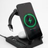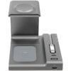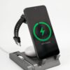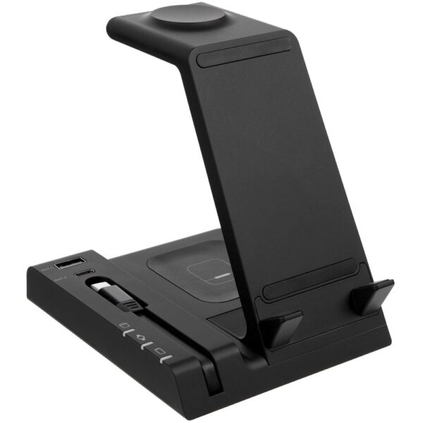 Зарядная станция Tres высшего уровня сложности позволяет заряжать до 5 гаджетов одновременно: телефон, часы Apple Watch 2–8, наушники с поддержкой протокола беспроводной зарядки Quick Charge и еще 2 устройства через кабели с разъемами USB-А и Type-C.