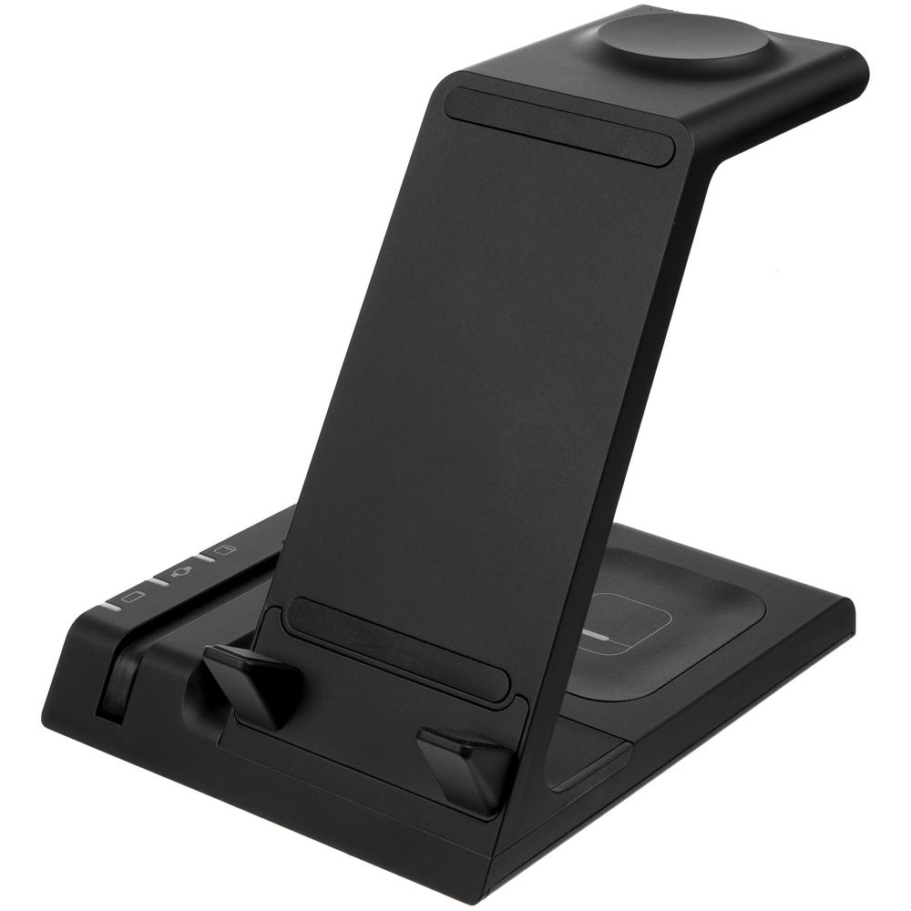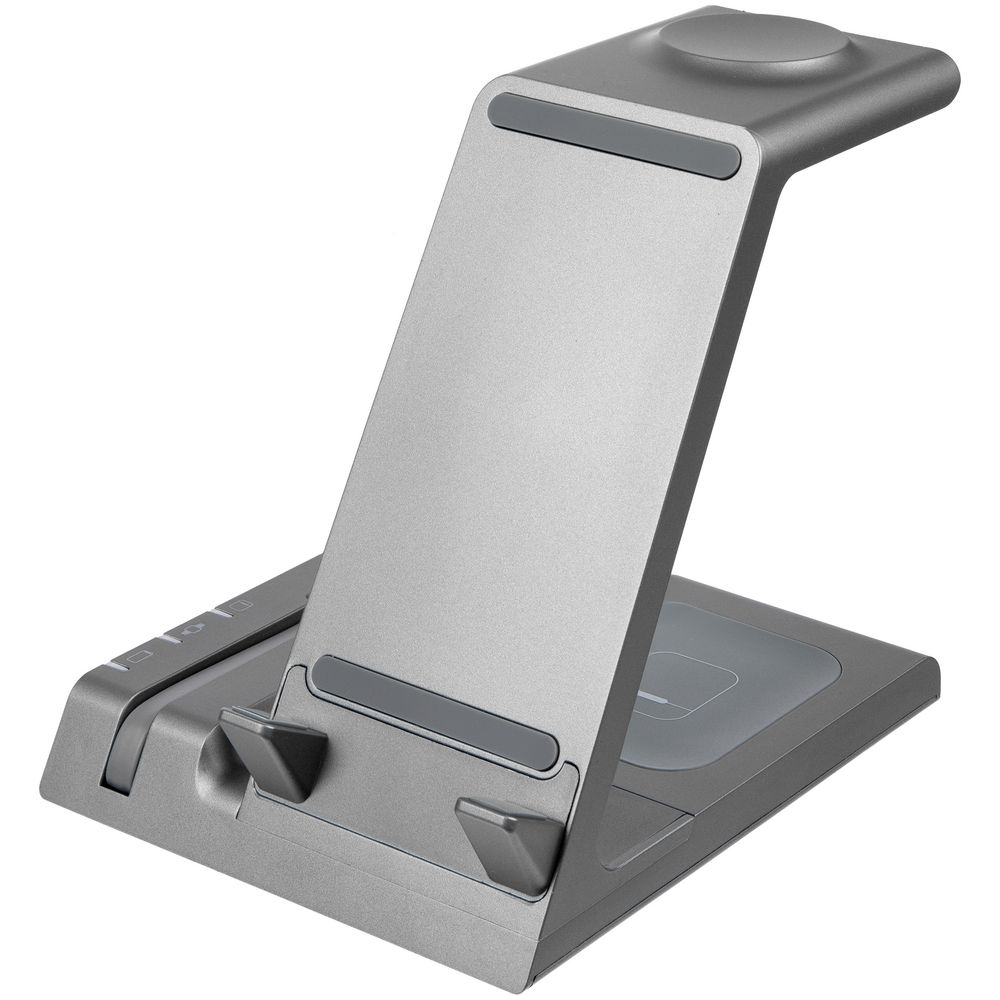 Зарядная станция Tres высшего уровня сложности позволяет заряжать до 5 гаджетов одновременно: телефон, часы Apple Watch 2–8, наушники с поддержкой протокола беспроводной зарядки Quick Charge и еще 2 устройства через кабели с разъемами USB-А и Type-C.