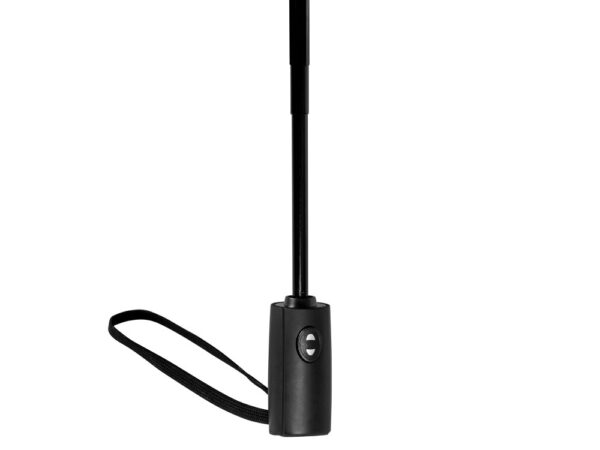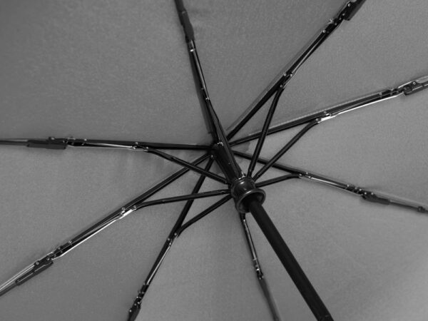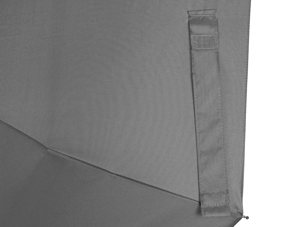 Купол зонта выполнен из переработанного пластика. Гибкие спицы из стекловолокна делают зонт стойким к порывам ветра. Удобная ручка софт тач. Фиксирующая купол застежка на липучке шириной 3 см — дополнительная опция для нанесения вашего логотипа.