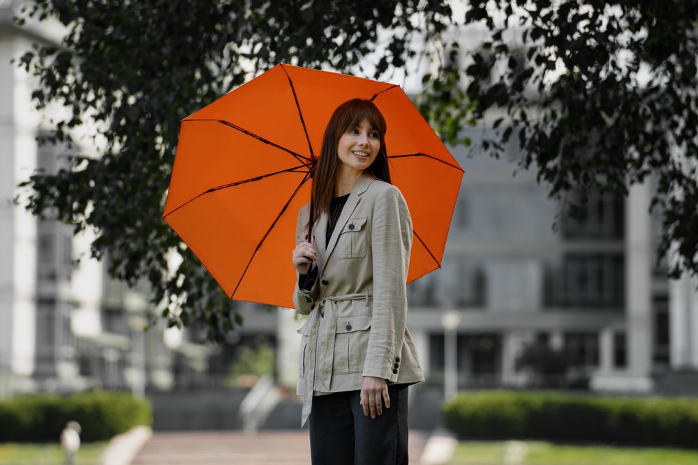 Надёжный зонт-автомат: стеклопластиковые спицы не сломаются даже в сильный ветер, а удобная ручка с мягким покрытием не выскользнет из рук. Идеальный баланс практичности и стиля для повседневного использования и корпоративных подарков. Всегда готов защитить вас от внезапного дождя.